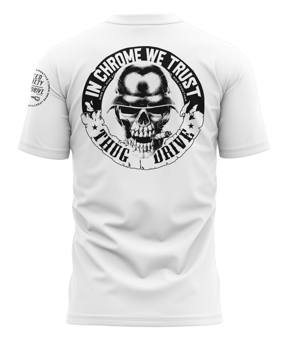 Exklusives Skull Motiv mit Schriftzug und Logo.